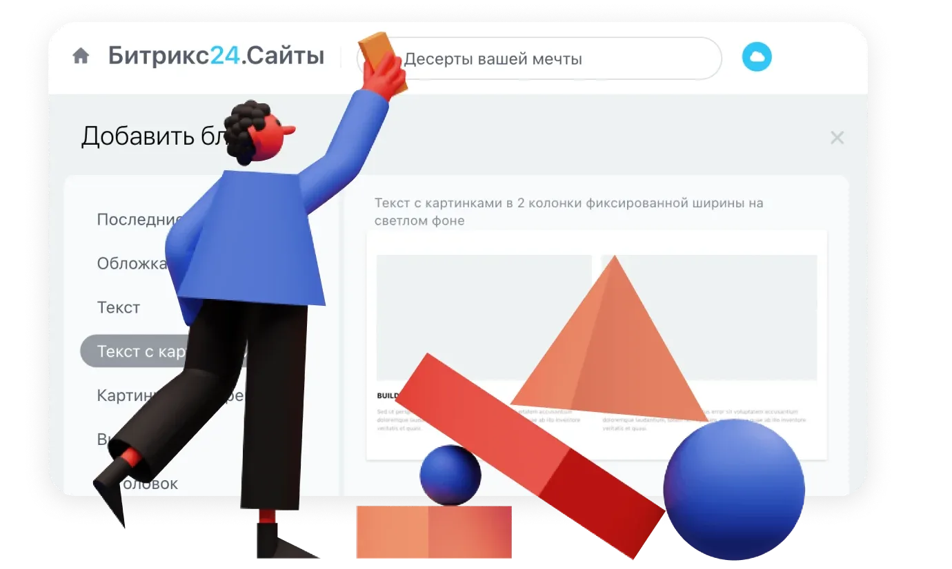 Красивый, удобный и продающий — вы легко сделаете сайт за несколько минут. Просто выберите шаблон в Битрикс24, добавьте текст и опубликуйте. На сайте уже будет онлайн-чат. Всё готово и ждет покупателей!