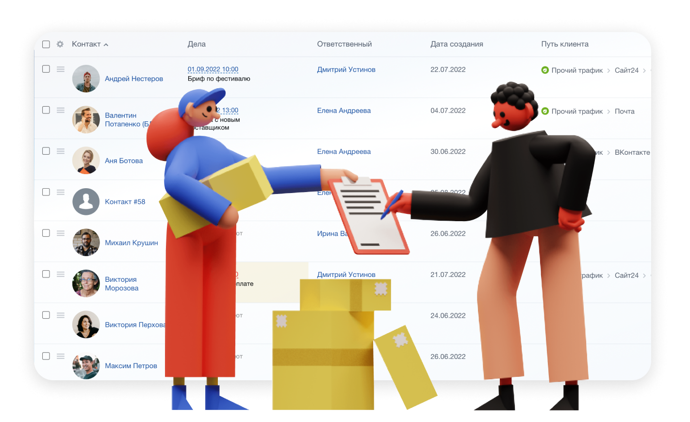 Все контакты автоматически сохраняются в CRM. Вы сможете напоминать клиентам о себе: